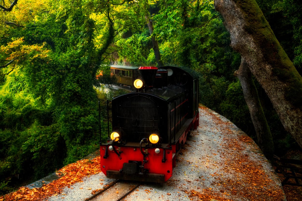 Een unieke manier om het prachtige landschap van Pilion te ervaren is door het stoomtreintje vanuit Volos te nemen. Het spoor kronkelt vanaf het stationnetje van Ano Lechonia, op ruim een kwartier ten oosten van Volos, de bergen in en wordt niet voor niets de mooiste treinrit van Griekenland genoemd. Van het oorspronkelijke smalspoortraject (60 centimeter breed) van 28 kilometer is vandaag de dag nog vijftien kilometer in gebruik. ’s Zomers rijdt Moutzouris (‘Smoezelig’, zoals het treintje liefkozend wordt genoemd) elke dag, buiten het hoogseizoen kun je elk weekend instappen. De stoomtrein boemelt in een heerlijk ontspannen tempo van twintig kilometer per uur richting eindstation Milies, over technische hoogstandjes van bruggen en door duistere bergtunnels, door een weelderige vegetatie van platanen en olijfbomen. Vergeet niet achterom te kijken: doordat het treintje gestaag omhoog klimt, heb je een spectaculair uitzicht op Volos en de Pagasetische Golf.