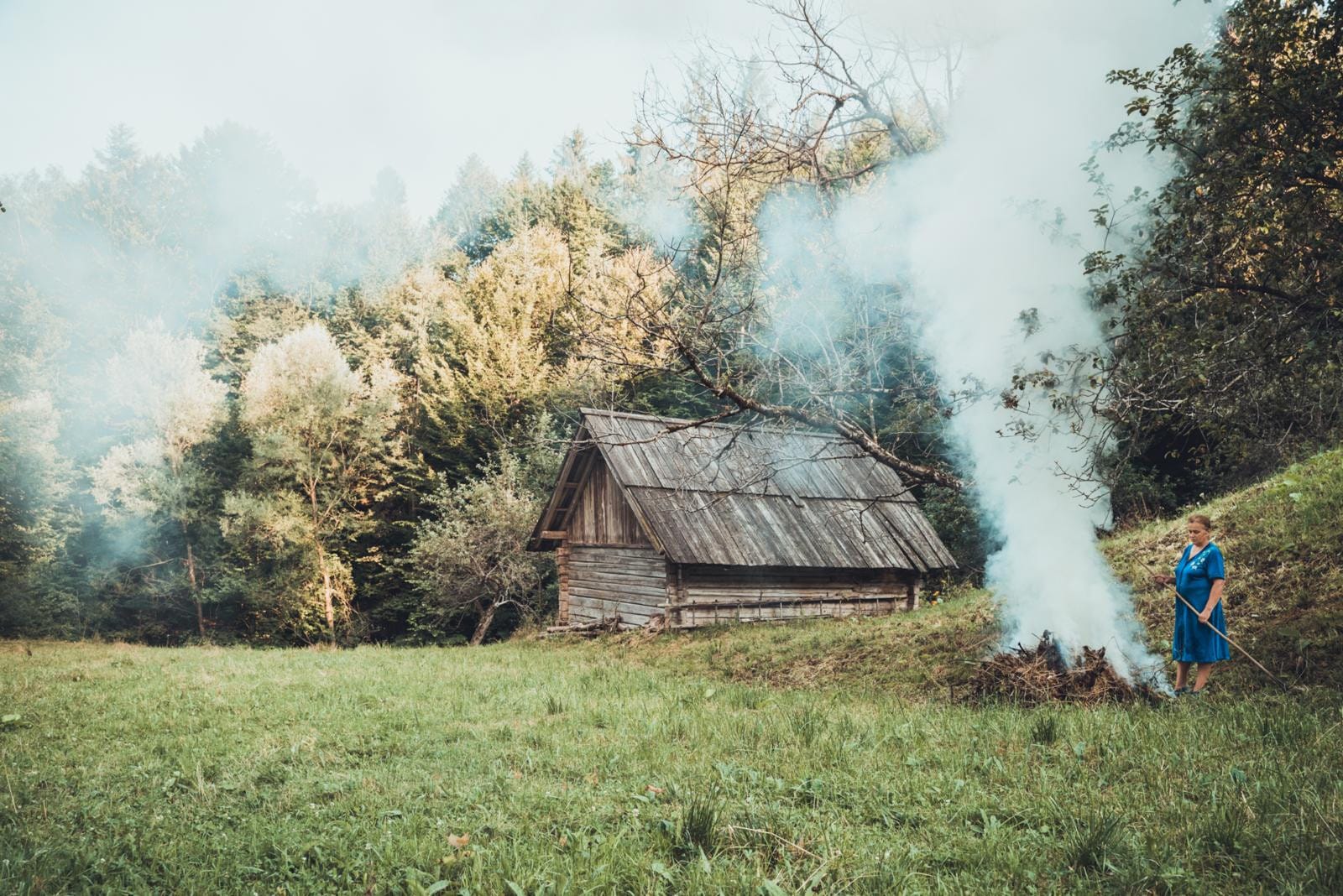 Verscholen tussen de bossen van Nationaal Park Hoetsoelsjtsjina, het beschermde natuurgebied van Hoetsoelland, verbrandt een boerin haar afval. Het geeft een inkijkje in het leven van alledag, wat in één klap niet meer alledaags is geworden.