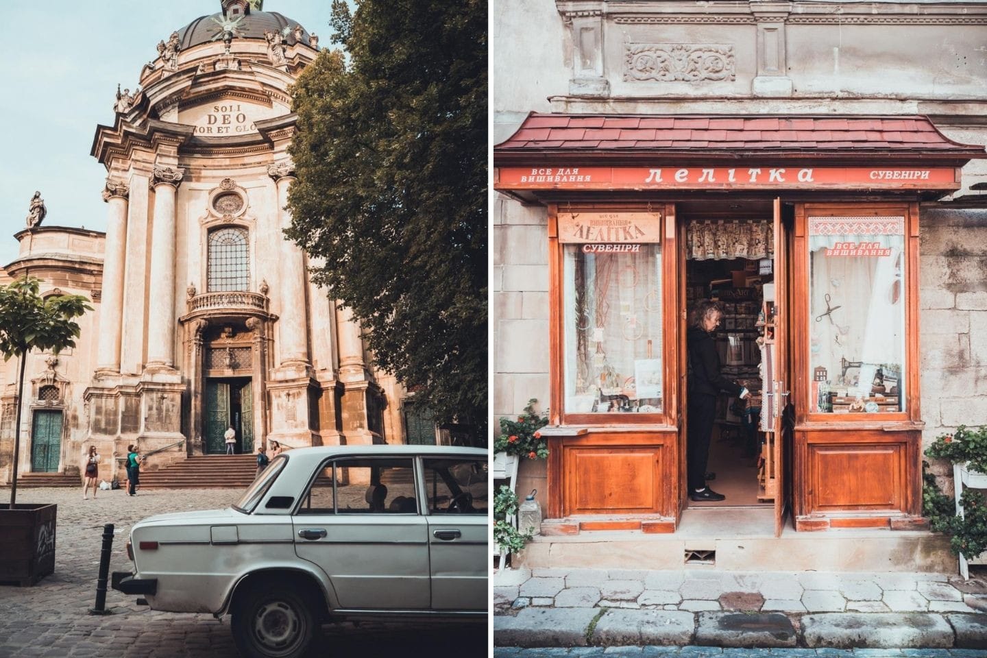 Links: de Dominicanenkerk in werelderfgoedstad Lviv. Voorheen een toeristische trekpleister – voor zover je van toeristen kon spreken -, nu een van de vele plekken in de stad waar landgenoten worden opgevangen voordat ze kunnen doorreizen naar o.a. Polen