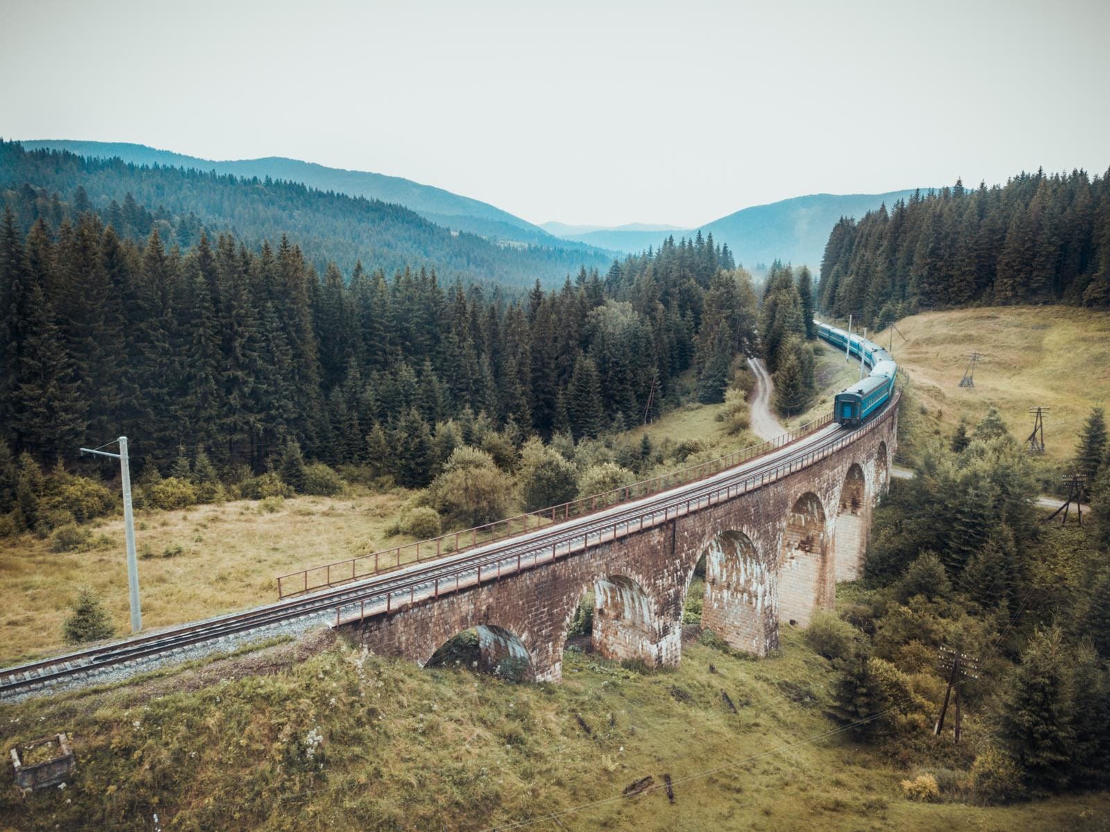 In 2019 boemelde de slaaptrein tussen Lviv en Odessa nog onbezorgd over een van de stenen spoorbruggen bij Vorochta; nu dienen de meeste treinen als vluchtroute weg van het geweld.
