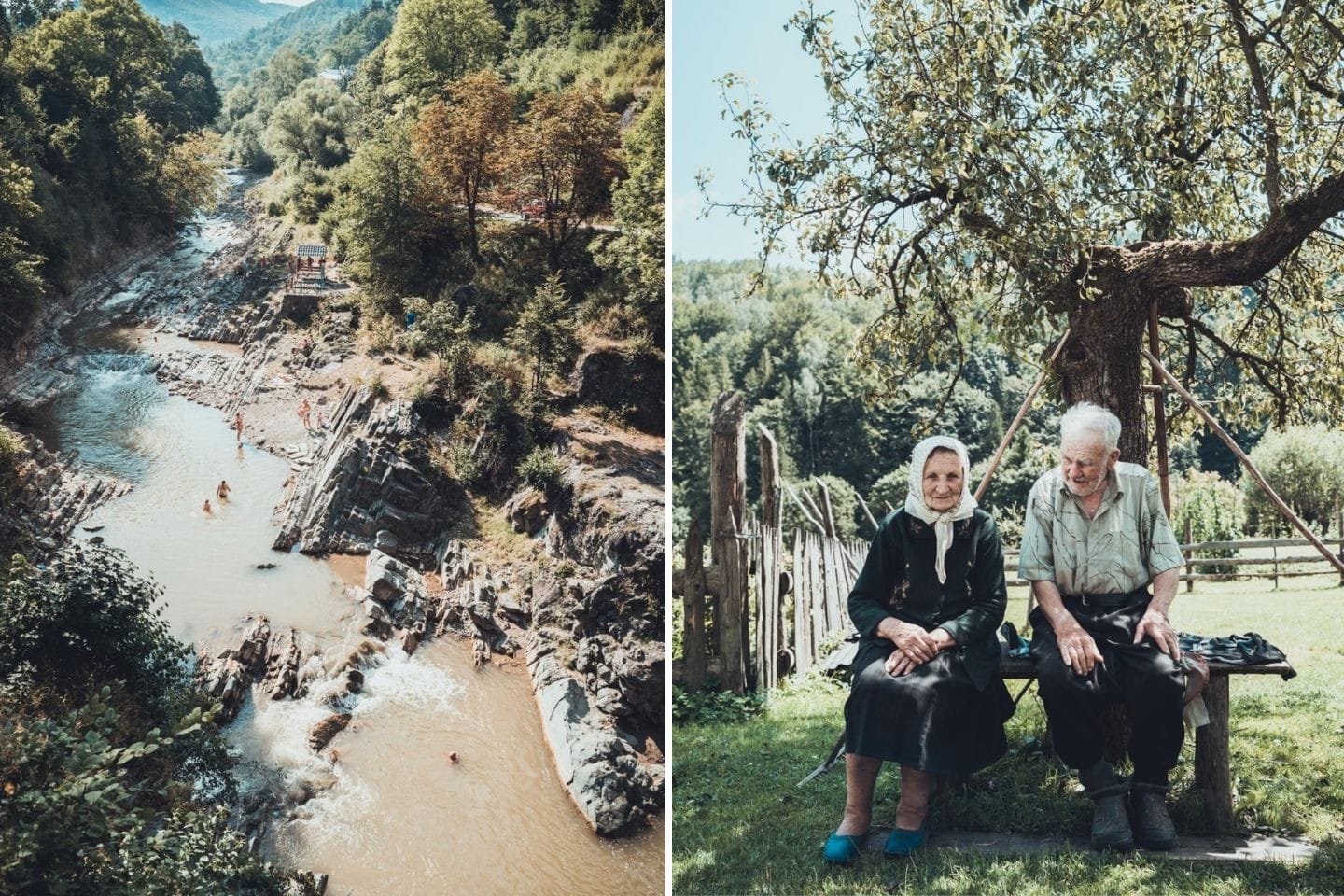 Vlakbij de EU-grens van Oekraïne met Roemenië zijn de uitzichten fenomenaal. Dit is vlak voor het dorpje Nizjnij Jalovets. De Bilyi Tsjeremosj (de Witte Kers-rivier) komt vanuit het Maramures-gebergte, slingert zich door het glooiende landschap en vormt in Zuidwest-Oekraïne een natuurlijke provinciegrens tussen Ivano-Frankivsk en Tsjernivitsi. Het is een gebied waar je als reiziger perfect weg van de massa kon reizen – voordat de oorlog uitbrak.