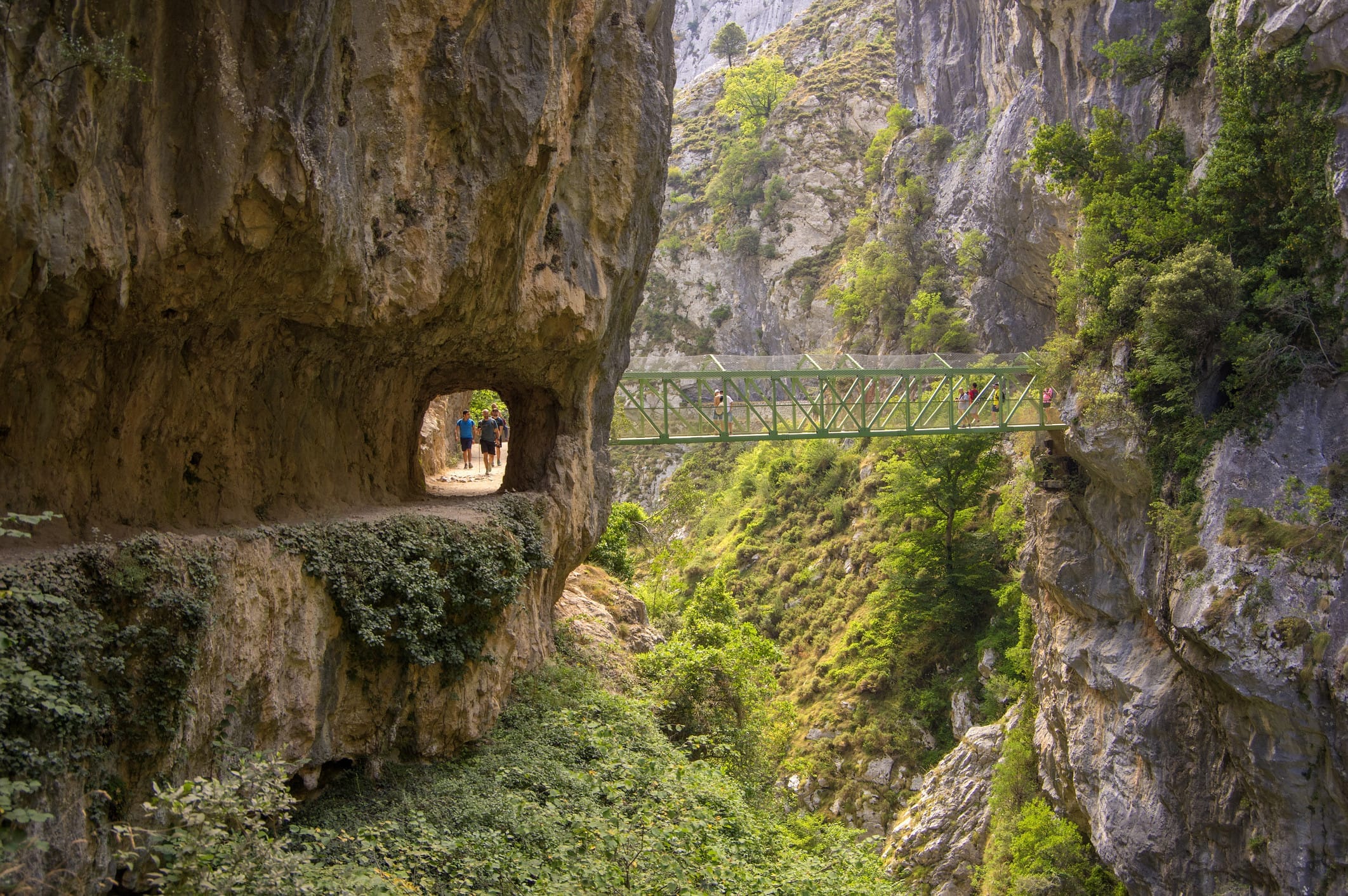 De Cares-route, een van de meest spectaculaire wandelingen in Spanje, strekt zich uit over 22 kilometer en biedt een onvergetelijke ervaring aan de westkant van de Picos de Europa. Deze route, die ook wel bekendstaat als de Garganta del Cares ofwel ‘de Goddelijke Kloof’, voert door een adembenemend landschap dat de ruigheid en natuurlijke schoonheid van Asturië perfect samenvat. De wandeling begint in het dorpje Poncebos en voert je door een smalle kloof die uitgesleten is door de rivier de Cares. Het pad is uitgehouwen in de rotsen en biedt spectaculaire uitzichten op de omliggende bergen en de diep beneden stromende rivier. Het contrast tussen de hoge, steile kliffen en de smalle paden maakt deze route zowel uitdagend als indrukwekkend. Onderweg kun je genieten van de rijke flora en fauna van de regio. Berggeiten en roofvogels zijn hier geen zeldzame verschijning, en de flora varieert van geurige kruiden tot kleurrijke bloemen die zich vastklampen aan de rotsen. De Cares-route eindigt in het charmante dorpje Caín, waar je kunt ontspannen en terugkijken op een wandeling die niet alleen fysiek uitdagend was, maar ook een feest voor de zintuigen.