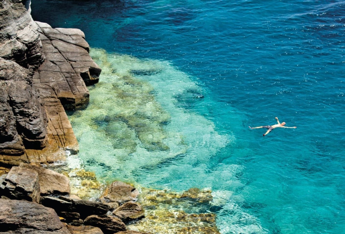 Om de felle zon te vermijden, wandelden we ‘s ochtends bijtijds naar een rotspartij aan zee om een heerlijke duik te nemen in het kraakheldere water. De volgende twee plekken mag je niet missen: de rotsen ten zuidoosten van de Kapel van de Zeven Martelaren en de rotsen die je via de rotstrap bij het Panagia Poulati-kerkje kunt bereiken.