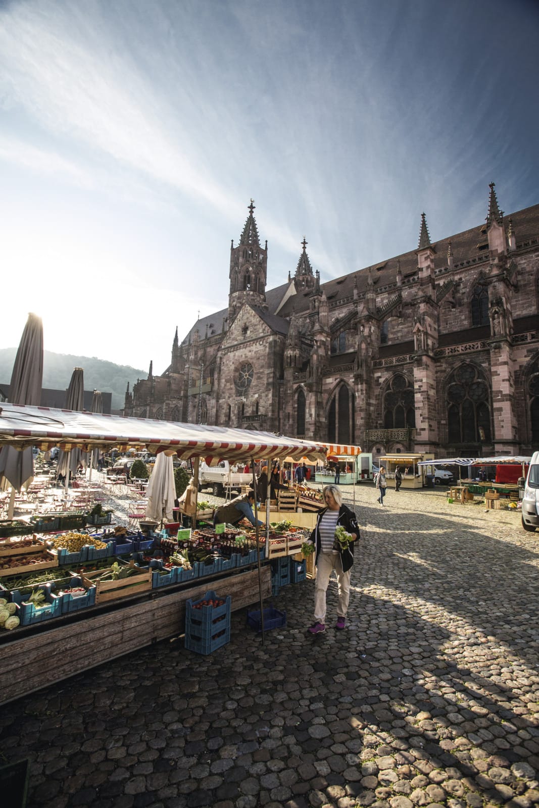 Het Munster van Freiburg, de kathedraal van de stad, mag je niet missen, ondanks dat het een gebaande pad is. Probeer de trappen te beklimmen naar de 116 meter hoge top van de gotische toren. In de schaduw van de kathedraal vindt elke dag een markt plaats tot 13 uur (zaterdag tot 13.30 uur).