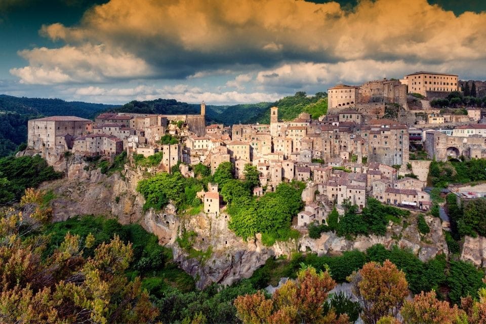 Het zuidwesten van Toscane is ongepolijst. Van tijd tot tijd doemen middeleeuwse plaatsjes op, balancerend op de rand van een afbrokkelend stuk tufsteen. De huizen blijven (ternauwernood) op hun plek staan dankzij een onopvallend mengsel van tufsteen en beton. Vooral Sorano is één grote schots-en-scheve dagdroom. Treed in de voetsporen van de Etrusken en bewandel de vie cave, holle wegen, naar al even spectaculair gelegen stadjes als Pitigliano, Manciano, Sovana en Vitozza.