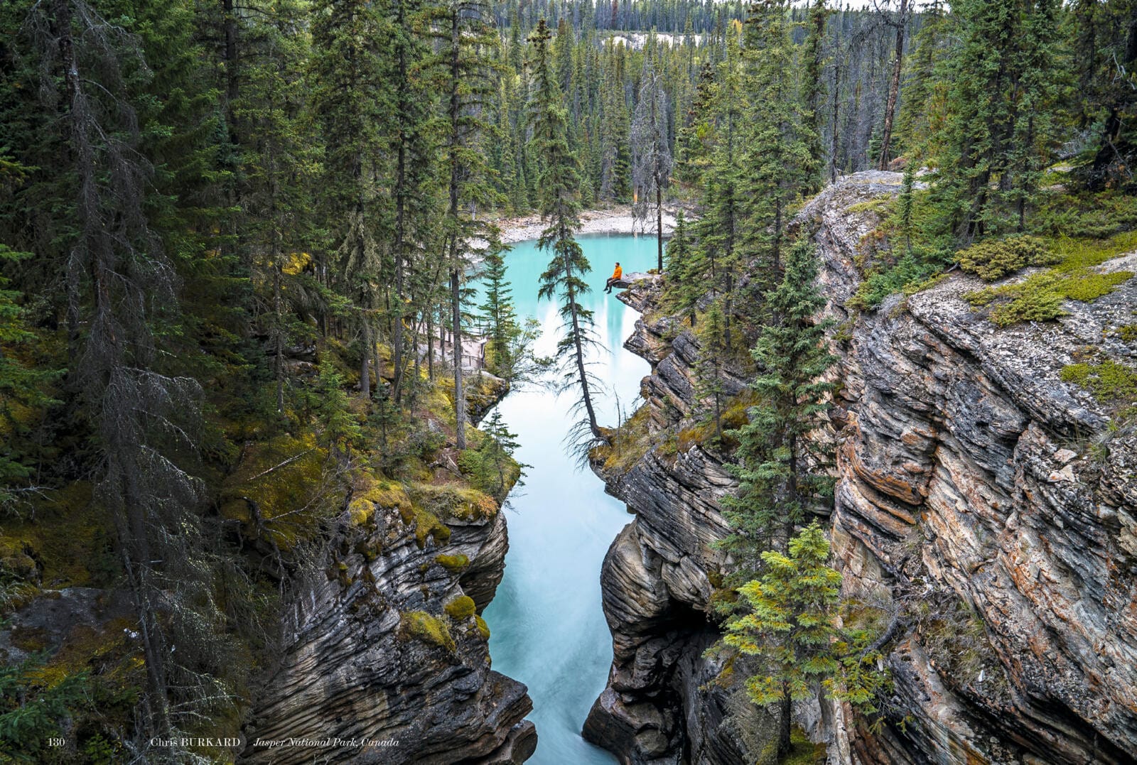 Outdoorfotograaf Chris Burkard trad buiten de gebaande paden in Jasper National Park in Canada: 'Ook in de populairste nationale parken is het mogelijk je alleen op de wereld te wanen, zolang je maar je eigen plan trekt. Een goed voorbeeld is Jasper National Park in de National Park in de Canadese Rocky Mountains. Lake Maligne, een van de hoogtepunten van het park, wordt door honderden toeristen per dag bezocht. Maar de meeste mensen komen met een tourbus aan en blijven op dezelfde plekken plakken, terwijl dit het grootste nationale park van Canada is. De natuur schreeuwt erom ontdekt te worden. Chris Burkard gaan hiken, op zoek naar een gletsjermeer waar we in ons uppie konden zwemmen. Uiteindelijk vonden we er een — de duik was ijskoud maar een van de beste ervaringen van onze reis. En broodnodig, want we hadden al een paar dagen niet kunnen douchen! Een andere highlight was een bezoek aan Spirit Island, een mini-eiland in Lake Maligne. Toeristen meren er via een georganiseerde boottocht slechts tien minuten lang aan, maar je kunt er ook naartoe kajakken en zo lang je maar wilt al het natuurschoon voor jezelf hebben. Wij hebben er ons tentje opgezet en zijn onder een surrealistische sterrenhemel in slaap gevallen.'