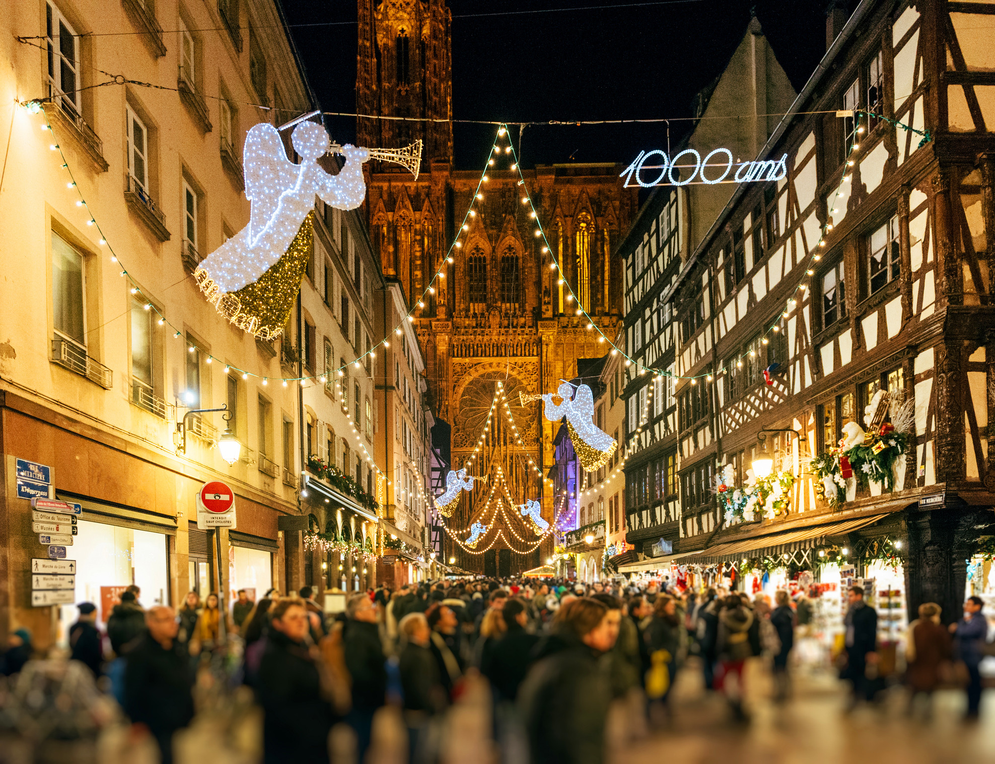 Hiermee kom je zeker in de kerststemming: de mooiste kerstmarkt bevindt zich aan de voet van de prachtige kathedraal van Straatsburg, het hoogste bouwwerk dat in de middeleeuwen is gebouwd en nog steeds bestaat. Dit is je kans voor een topfoto!