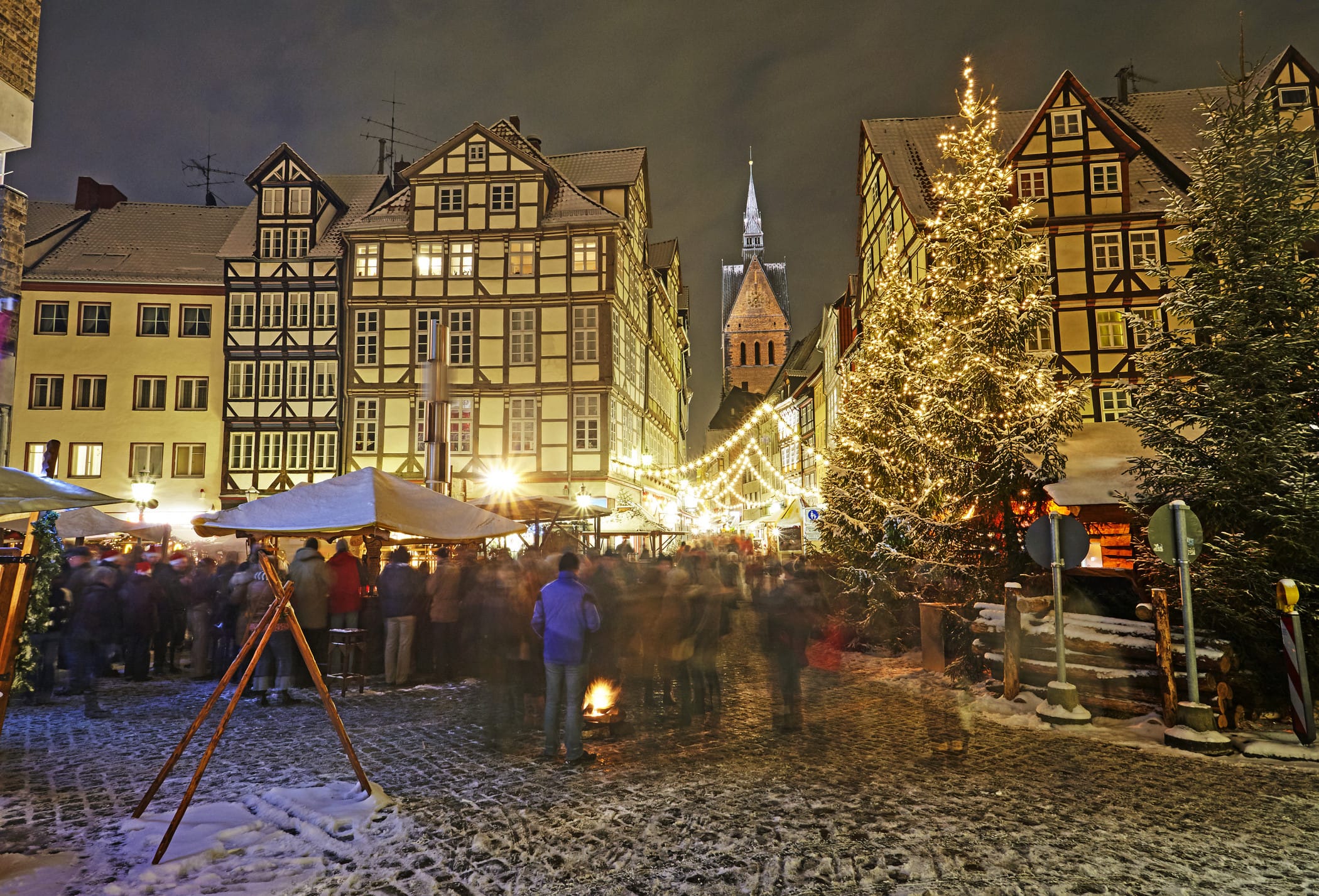 In het historische centrum van Hannover vind je een van de meest sfeervolle kerstmarkten van Noord-Duitsland, waar duurzame principes hand in hand gaan met traditie en vakmanschap. Van 24 november tot 22 december wandel je langs kraampjes met fairtrade, biologische en regionale producten, terwijl op de Ballhofplatz een Fins kerstdorp verrijst, compleet met Lapse tent, rendierlekkernijen en ambachtelijk werk. Rondom het Historisch Museum voert de middeleeuwse markt je terug in de tijd, met smeden, vilten en andere demonstraties in de Handwerkergasse. Op de Holzmarkt creëert een klein dennenbos rond de beroemde wensringfontein een idyllisch winterdecor. Voor kinderen zijn er draaimolens, poppentheater en een kerstbakkerij, en elke avond sluit een nachtwaker in historisch kostuum de markt af.