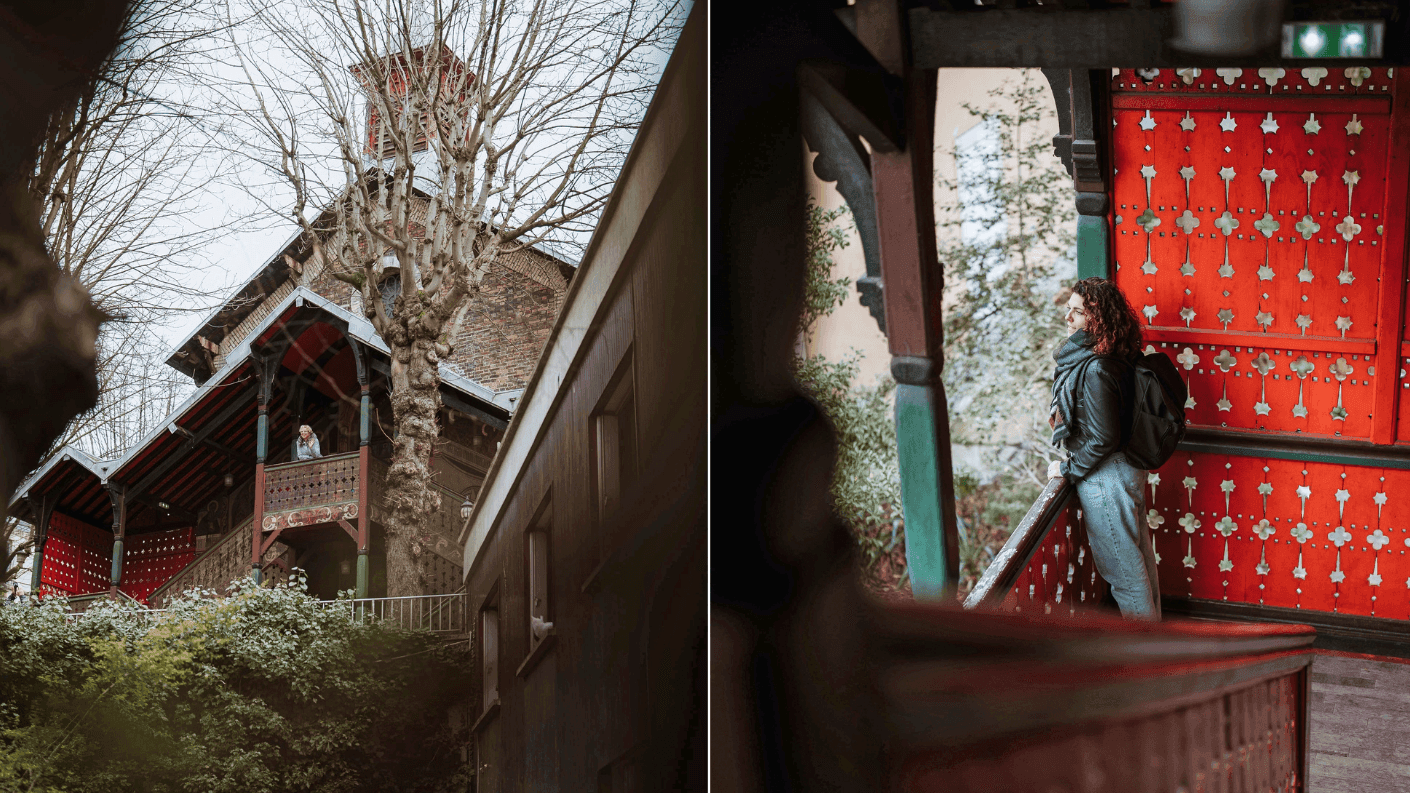 In de wijk Buttes-Chaumont ligt een van Parijs’ best bewaarde geheimen: Église Saint-Serge de Radonège. Verstopt achter de alledaagse façades van Rue de Crimée onthult een ijzeren hek de weg naar deze Russisch-Orthodoxe kerk met indrukwekkende houten gevel en kleurrijke veranda. Zondag, de dag van het publieke zondagsgebed, is de beste dag om deze kerk te bezoeken. Op andere momenten kun je alleen naar binnen als je iemand vindt die bereid is je binnen te laten.