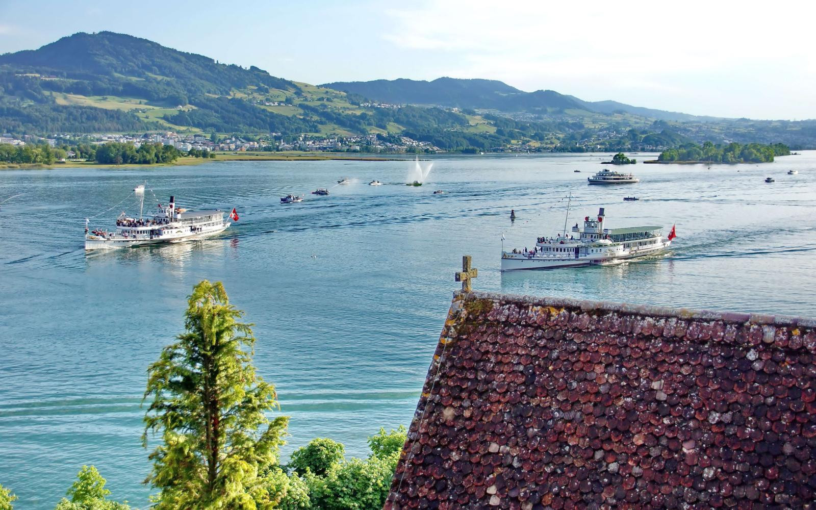 Op de zuidelijke oever vind je het pittoreske Rapperswil, met zijn charmante straatjes, romantische rozentuinen en pleinen waar geregeld markten en festivals worden gehouden. Vanaf de twaalfde-eeuwse muren van het op een heuvel gelegen Schloss Rapperswil heb je een weids uitzicht over het meer en de omringende bergen. Tegen de zuidelijke flank van de Schlossberg bevindt zich de oudste wijngaard aan het Meer van Zürich. Voordat het uitgebreide treinnetwerk zo’n beetje elke hoek van dit bergachtige land toegankelijk maakte – in slechts veertig minuten reis je per trein van Zürich naar Rapperswil – was men aangewezen op andere vervoermiddelen. Tijdens een twee uur durende vaartocht aan boord van de Stadt Zürich uit 1909 of Stadt Rapperswil uit 1914 reis je ruim een eeuw terug in de tijd. Deze historische raderstoomboten varen tussem 1 mei en 30 september regelmatig op en neer tussen het Bürkliplatz in Zürich en Rapperswil.