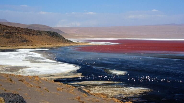 - De Uyuni-zoutvlakte en de Lagunas Coloradas bieden surrealistische, schilderachtige vergezichten van roze, witte en groene meren omringd door vulkanen en flamingo’s.